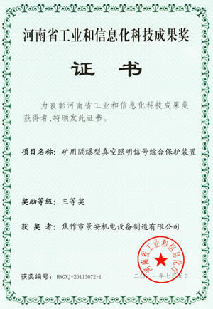 LED燈省工業(yè)和信息化科技成果證書