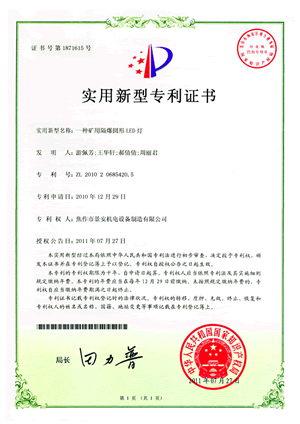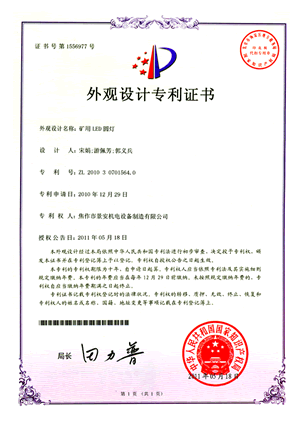 礦用LED圓燈專(zhuān)利證書(shū)